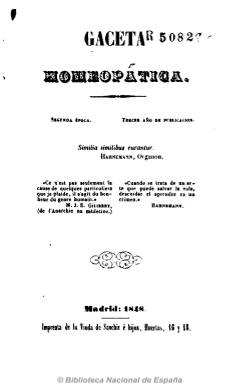 Su subtítulo es “periódico de propaganda exclusivamente de esta doctrina”, que a partir de su entrega del seis de junio de 1849 cambiará a: “periódico oficial interino del Instituto Homeopático Español”, que este año será creado por el grupo de médicos homeópatas madrileños en pugna con los de la Sociedad Hahnemanniana Matritense.