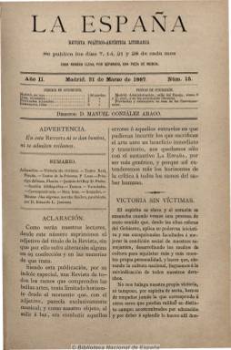 Es continuación de La España musical (1886-1887), que reduce su titulo para no encorsetar la variedad de sus contenidos, pero que mantiene las mismas materias que su precedente y su misma confección y estructura, y continúa su serie en números semanales de 16 páginas, incluyendo por separado una pieza de música. También la sigue dirigiendo Manuel González Araco, y aunque continúan colaborando, entre otros, José Alegría, otros textos están firmados con seudónimos, como Falutín o Paquito. También modifica su subtítulo, siendo ahora “revista política, artística y literaria”.