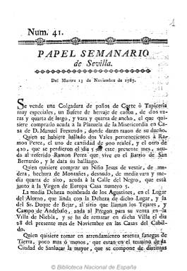 El último número conocido de este título es el 46, que corresponde al 18 de diciembre de ese mismo año 1787. A partir de enero de 1788 comienza a imprimirse Semanario de Sevilla, en la misma Imprenta de la Ciudad, de la calle Génova, que después adopta el nombre de Imprenta Mayor de la Ciudad, con un formato similar. De este título –más conocido en la historiografía- están localizados sus primeros siete números, que van del uno de enero al 19 de febrero de este año, en las colecciones de la Universidad de Sevilla y de la Hemeroteca Municipal de Madrid. Por lo que este título con toda probabilidad debió sustituir a Papel semanario de Sevilla.