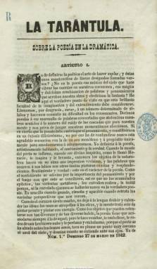 Semanario (salía los domingos) que, estampado en la imprenta de Benavides, aparece el 27 de marzo de 1842, fruto de la disensión entre los redactores y colaboradores de la también revista cultural La Alhambra (Granada: 1839-1843), para “zaherirles en su labor”. Se suscribía en librerías de ciudades españolas. En entregas de dieciséis páginas y compuesto a una columna inserta artículos de crítica y arte, así como de creación literaria en prosa y verso (narraciones, romances, sonetos, etc.), otros sobre arte dramático e, incluso, alguno de modas. También ofrece bibliografía y notas de actualidad cultural, especialmente sobre las actividades y representaciones dramáticas en el liceo de la ciudad.