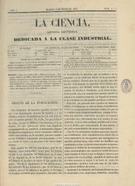 Con el subtítulo “revista universal dedicada a la clase industrial” aparece el ocho de julio de 1857. Inserta textos de divulgación sobre artes y oficios, artes agrícolas, aplicaciones de la física, química y mecánica, sistema métrico decimal y otros de igual carácter práctico. A ello le suma las secciones comercial, mercantil y oficial. Asimismo, incluye textos literarios y poesías, una revista decenal con noticias particulares y otra sección de miscelánea. Con cuatro entregas al mes, de ocho páginas cada una, compuestas a dos columnas, incluye también una doble página de grabados bajo el epígrafe “Álbum de la ciencia”. Impresa por Manuel Galiana, el seis es el último número de la colección de la BNE, correspondiente al 15 de agosto de 1857, por lo que su vida debió ser efímera, desapareciendo ese mismo año.