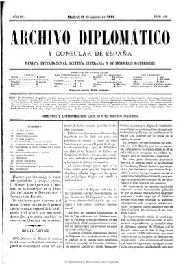 Revista especializada que había comenzado a publicarse el 15 de abril de 1883 bajo el título Archivo diplomático-político de España, y que un año después había reducido su cabecera a Archivo diplomático de España (véanse estos títulos en esta colección de la Biblioteca Nacional de España). Con esta cabecera, y siguiendo la secuencia de sus antecesoras, comienza a editarse a partir del 15 de agosto de 1885.
