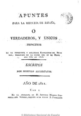 Verdaderos y únicos principios de la imprevista y milagrosa revolución de Sevilla || Apuntes para la historia de España o Verdaderos y únicos principios de la imprevista y milagrosa revolución de Sevilla, realizada en la noche del 26 de mayo del año de 1808