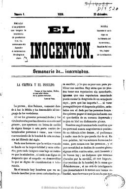 Subtitulado “semanario de… inocentadas”, es un periódico barcelonés de carácter humorístico con textos en prosa y en verso, alguno de ellos en lengua catalana, que inicia su aparición con un referencia a Jaime Balmes sobre la prensa, que se dice independiente e imparcial en su declaración de intenciones, en la que señala que no descenderá al insulto personal. Publica también algunos estudios biográficos, pero sobre todo gacetillas o crónicas, con una sección bajo el epígrafe “Revista semanal”, sobre la actividad teatral y otros espectáculos musicales y otros aspectos de la vida literaria y artística local. Su estilo no va más allá de cierto humor blando o inocente. Sus textos están firmados, principalmente, con seudónimos o iniciales, como es el caso de “Los Inocentes”, en referencia a sus redactores. Aparece en números de ocho páginas, a dos columnas, de la imprenta de Narciso Ramírez. Sólo editó 24 números, del 23 de diciembre de 1856 al 3 de julio de 1857, fecha en que se despide de sus lectores.