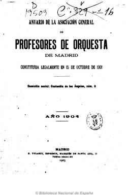 Editado por la Asociación General de Profesores de Orquesta de Madrid, constituida en 1901 y presidida por Fermín Ruiz, contiene las memorias, reseñas históricas y balances de gastos e ingresos de esta entidad redactados por sus secretarios, Victorio Moreno Noguera y Anselmo Redondo. También la relación de sus socios por secciones y unas conclusiones de su asamblea celebrada en 1909.