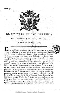 Con Barcelona y otras ciudades catalanas en manos del ejército napoleónico, en junio de 1808 será constituida la Junta Suprema del Principado de Cataluña en Lérida, primera ciudad que se había sublevado en el principado, y que comenzará a editar Diario de la guerra de la ciudad de Lérida (aunque aparece con frecuencia bisemanal), considerado el primer periódico que se imprime en esta ciudad, pero el primero propiamente leridano será Diario de la ciudad de Lérida, que comenzará a imprimirse el uno de julio de ese año, coincidiendo con la marcha a Tarragona de la junta de defensa catalana.