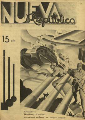 Se trata pues de un semanario que nace en plena guerra civil, de ocho páginas, que más tarde aumenta hasta la docena, con una cubierta ilustrada por un gran dibujo o fotografía, generalmente un fotomontaje. Usa papel de diferentes calidades y tintas para su impresión, debido a su escasez, y está “visado por la censura”. Comienza su primer editorial expresando que “un nuevo órgano periodístico aparece en las filas antifascistas”, y se refiere a los jóvenes “de una izquierda a la que la guerra ha destrozado bases fundamentales que no han de rehacerse”, obligados a defender “la causa de la libertad, del proletariado, de la República”, y que ya “ha dado, está dando y dará su sangre por la derrota del fascismo”. Entre sus numerosos lemas, aparece el siguiente: “Jóvenes antifascistas! El periódico Nueva República de las Juventudes de Izquierda Republicana será un órgano de guerra al servicio de la juventud en armas”.