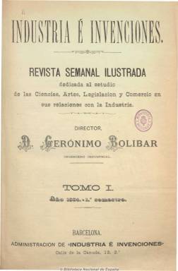 Revista semanal ilustrada dedicada al estudio de las ciencias, artes, legislación y comercio en sus relaciones con la industria, la ganadería y la electricidad, dirigida por el ingeniero industrial Gerónimo Bolívar, que al ser nombrado director de la Oficina de Propiedad Industrial establecida en Barcelona, se convierte también en publicación oficiosa de la misma, incluyendo información sobre los registros de patentes y marcas y dibujos (logos) de las marcas solicitadas. Contiene artículos técnicos y profesionales, sobre descubrimientos científicos, mejoras, adelantos e inventos industriales, tanto manufactureros como agrícolas y de transportes y otros negocios, así como secciones de noticias varias, oficial (legislación), de subastas y de bibliografía. También da cabida a textos de conferencias e informaciones sobre exposiciones industriales y de economía en general y a otra sección sobre electricidad. Los artículos suelen ir acompañados de grabados y láminas descriptivas. Publicada en números de ocho páginas, que llega a ampliar hasta las 24, al incluir anuncios publicitarios. Con índices semestrales que aparecen al final de cada año de la colección digitalizada.