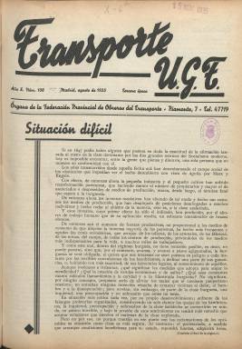 Continúa la secuencia del título Transporte, que había estado publicándose desde enero de 1926 a julio de 1935, al que se le añade ahora el acrónimo de la Unión General de Trabajadores. Sigue siendo editado por la Federación Provincial de Obreros del Transporte de Madrid, en entregas de ocho páginas, compuestas a una o dos columnas y estampadas en la imprenta Gráfica Socialista, y con periodicidad mensual. La redacción y administración de la revista sigue estando en la Casa del Pueblo de la madrileña calle de Piamonte. Su primera entrega con este nuevo título corresponde a agosto de 1935, con la secuencia tercera época, décimo año de edición y número 108. Además de informar sobre este sindicato y las luchas del movimiento obrero, publica información sobre el Congreso Internacional de Obreros del Transporte, celebrado en Copenhague en esas fechas, o textos de Pablo Iglesias, Carlos Hernández o Irene Falcón. También crónicas de actualidad obrera, política y municipal madrileña, firmadas por A. de la Puebla o bajo el seudónimo Sil. Va ilustrado con chistes gráficos, algunos del dibujante Rivas, que firma con su inicial R, al igual que ya lo hiciera en el anterior título, y con fotograbados de actualidad, firmados por el fotógrafo Díaz Casariego.