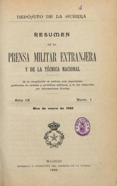 Publicación mensual del Depósito de la Guerra del Ministerio de la Guerra de España en la que se recopilan noticias y artículos publicados en revistas y periódicos militares extranjeros así como en la prensa técnica española, a las que se añaden otros textos procedentes de informaciones directas. Es continuación de la que se publicó entre octubre de 1894 y diciembre de 1901 bajo el título Extracto del resumen formado por este centro de las noticias y artículos…, que también forma parte de la colección de la Biblioteca Nacional de España (BNE).