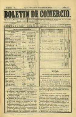 Con este título reducido sigue editándose Boletín de comercio de Santander, que había comenzado a publicarse en la capital cántabra a partir de agosto de 1839, y que también forma parte de la colección de la Biblioteca Nacional de España (BNE). Como Boletín de comercio se publicará desde el número 119, correspondiente al ocho de octubre de 1852, siguiendo la secuencia, que es anual. Continúa saliendo de la Imprenta y Litografía de José María Martínez, quien además es su editor responsable y director, que lo estampa en una sola hoja (dos páginas) en formato de pliego de marca española, a veces tres páginas, apareciendo tres veces a la semana: lunes, miércoles y viernes.