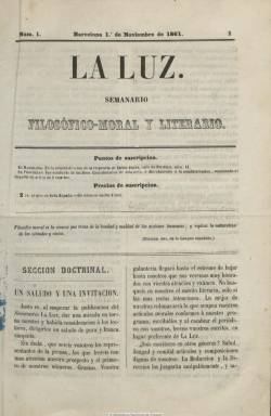 Con el subtítulo “semanario filosófico-moral y literario”, salía los domingos, a partir del uno de noviembre de 1861, fundado y dirigido por José Amores y Carbonell (1832-1891), que será presbítero beneficiado de Santa María del Mar, de Barcelona, y que años después, al estallar la revolución de 1868, tendrá que salir huyendo hacia Francia. En números de ocho páginas y compuesta a dos columnas, la publicación está dividida en dos secciones. La primera, doctrinal, con textos de índole apologética y defensores de la moral católica, con incursiones en aspectos sociales, como son el matrimonio o el asociacionismo de las mujeres en torno a las congregaciones religiosas.