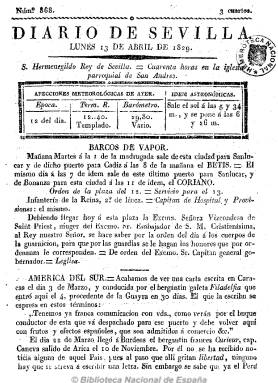 No debe ser confundido con el otro cotidiano que en la misma época también es autorizado a imprimirse en la capital hispalense: Diario de Sevilla de comercio, artes y literatura (1829-1856).