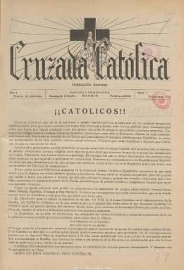 Publicación mensual que aparece en noviembre de 1932, de inspiración sindicalista-católica y oficiosa de la Confederación Española de Derechas Autónomas (CEDA), que hace suya la cita evangélica “Quien no está conmigo, está contra mí”. En su cabecera aparece estampado un grabado con una cruz y un cruzado montado a caballo, así como las señas de su identidad: un periódico sin empresa, “completamente independiente en la política”, pero defensor de los intereses católicos, “llámense pequeños comerciantes, proletarios o capitalistas”. Aunque en su artículo de presentación dirá que no combatirá a la República, la acusara de arrancar la fe de los católicos y de su persecución.