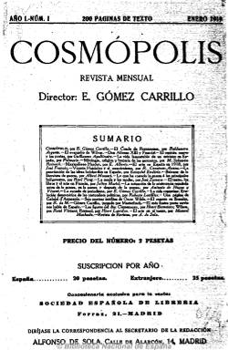 Además de a la literatura anglosajona (publica seis poemas inéditos de Oscar Wilde), Molina y los demás estudiosos de la revista destacan de ella sobre todo la atención dedicada en sus páginas a las literaturas francesa, hispanoamericana y portuguesa. De la primera, la traducción de artículos y poemas de Apollinaire, Mallarmé, Maetelerlinck, Baudelaire, Gide o Max Jacob, entre otros muchos. En abundantes números publica la sección “Antología francesa”, cuyos poemas son traducidos por el ya citado Guillermo de Torre y por Edmundo González Blanco, Juan Ramón Jiménez, Pedro Salinas, Enrique Díez-Canedo o Ramón Pérez de Ayala, entre otros. Para Molina, lo francés en Cosmópolis “es no sólo lo importante, sino un elemento básico”, tanto en extensión como en intensidad, ocupando acaso más espacio y dedicación que la propia literatura española.