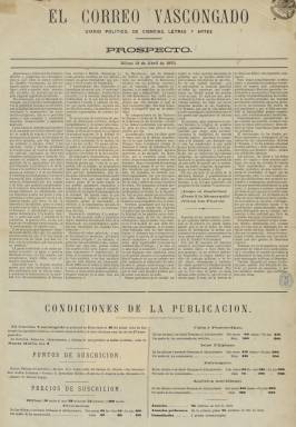 Con el subtítulo “diario político, de ciencias, letras y artes”, comienza a ser publicado en Bilbao el 16 de abril de 1873, siendo uno de sus fundadores y director el arquitecto y escritor Sabino de Goicoechea Echevarría (1829-1901) y su principal redactor el también periodista de origen vizcaíno Antonio Trueba (1819-1889). Es un periódico alfonsino y anticarlista, en la órbita del canovismo, de tendencia liberal y fuerista, que estampa como consigna: “¡Abajo el desorden! ¡Paso a la monarquía! ¡Vivan los fueros!”. El prospecto que había hecho circular el 12 de abril, un mes después de la proclamación de la República por las Cortes, comenzará calificando las circunstancias en las que aparece de “desastrosas y tristes” para “la desventurada nación española y nuestro antiguo, noble y querido solar”, “sin monarquía, con la Hacienda arruinada, con el ejército indisciplinado, con la propiedad atacada en sus bases, con la integridad nacional amenazada, insultados y escarnecidos los sentimientos religiosos”… “Y para colmo de desventuras, la guerra civil”, por lo que proclama “respeto a la religión de nuestros mayores, defensa de la sociedad, de la integridad de la patria y de la familia”.