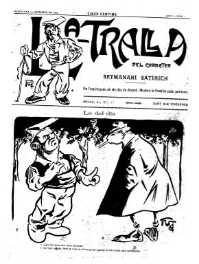 “Setmanari satirich” es el primer subtítulo adoptado por esta publicación adscrita al nacionalismo autonomista catalán “radicalmente demócrata”, que, desde el 25 de diciembre de 1903 hasta el 24 de junio de 1904, publica hasta 27 entregas en gran formato, de cuatro páginas cada una, generalmente (algunas extraordinarias serán de seis u ocho páginas), compuestas a cuatro columnas, e ilustrado con caricaturas, viñetas y chistes gráficos. Está escrito en su totalidad en catalán, aunque el pie de algún chiste aparezca en castellano. Indica también en su cabecera que “mudará la frisel-la cada semana”, y su impresor utilizará en algunos números distintas tintas de color (rojo y azul) para su estampación.