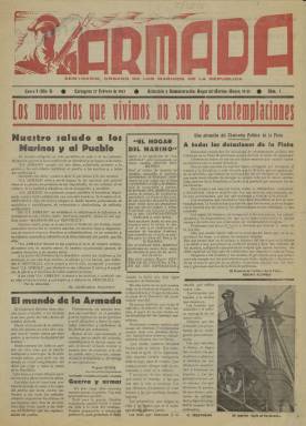 Sus entregas comenzaron siendo de cuatro páginas, compuestas a cinco columnas, usando dos tintas, y empleando la roja para la cabecera, dibujada por Samper, que en su primera entrega aparece sin el artículo –sólo, Armada. También usa la tinta roja para los principales titulares de la primera y última páginas. Su consigna más destacada es: “Por la cultura y la libertad. Por la moral y la disciplina. Por el Gobierno legítimo. Por la República española. Por la lucha a muerte contra el fascismo”. Su redacción y administración estuvo al principio en el Hogar del Marino, establecido en el número 19-21 de la cartagenera calle Mayor, que ese mismo día 27 de febrero de 1937 fue inaugurado. En septiembre de 1937, la redacción pasará a estar ubicada en la sede de la jefatura de la Base Naval, en el número 7 de la Muralla del Mar. Será una publicación ilustrada con fotografías, humor gráfico y algunos dibujos; y en sus primeras entregas indica que estaba estampada en la Imprenta Casa Garnero. También usará distinto papel de prensa para su impresión en algunos de sus números.