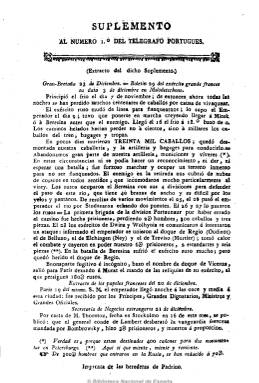 Probablemente se trate de la traducción, extracto y edición en Sevilla del periódico lisboeta del mismo título, de carácter antifrancés. La colección de la Biblioteca Nacional de España consta de un “Suplemento al nº 1º del Telégrafo portugués (extracto del dicho suplemento)”, salido de la Imprenta de la Herederas de Padrino, en una hoja, con noticias bélicas del ejército napoleónico y el ruso, datada en Londres y correspondientes a las últimas semanas del año 1812. Así como el número 3, correspondiente al 13 de febrero de 1813, de cuatro páginas, estampado en la imprenta de la calle Vizcaynos, a cargo de Anastasio López, con noticias del mismo tipo datadas en Lisboa, Londres, Berlín, Moscú, Santiago y Oviedo, extractadas a su vez de otros periódicos europeos. Es de reseñar aquí la gran competencia que en esos momentos existía en la ciudad hispalense para publicar papeles, ya que había una veintena de imprentas, el gran movimiento periodístico existente y el interés por conocer noticias sobre la invasión francesa de Europa y, en concreto, de España. Se desconoce si siguió publicándose.