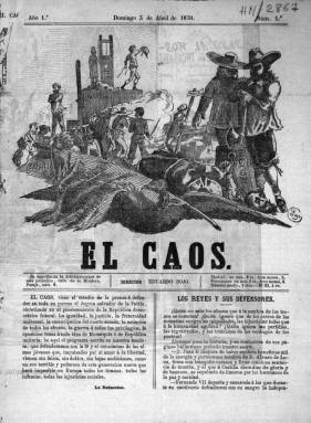 De vida efímera, lo que era corriente en esos años de indefinición política, El Caos nació cuando los generales Prim y Serrano, dueños de la situación, buscaban un rey para España tras descartar la alternativa republicana. En su primer número, la publicación se declara defensora de una República democrática federal y para que no haya margen de duda inserta en su cabecera una viñeta que retrata el fin violento de algunos reyes a lo largo de la historia, como la muerte de Luis XVI en la guillotina durante la Revolución francesa.