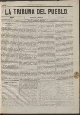 En el número 3 de la Tribuna del Pueblo, que es con el que se inicia la colección de la BNE, se informa que los dos primeros números han desaparecido de la circulación al ser secuestrados por el Gobierno. Con el título ¡Buen Principio! la primera columna de la portada señala: ‘Bajo malos auspicios hemos pisado los umbrales de la imprenta. Nuestros dos primeros números han sido recogidos en el día de ayer por orden de la autoridad superior de la provincia’.