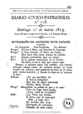 Es un periódico típico de la guerra napoleónica, que lleva en su cabecera el lema en las entregas de su colección en la BNE: “Año 6º de nuestra Revolución: 2º de la Constitución política”. Comienza con el santoral, publica artículos, alguno de ellos en lengua gallega, y noticias de España, principalmente de Cádiz, y del Extranjero, sobre todo de las guerras napoleónicas, así como algunos anuncios, bibliografía o algunas poesías también lengua gallega.