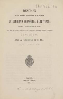 Título: Resumen de las acciones virtusas premiadas por la Sociedad Económica Matritense, 1865