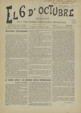 Periódico cuyo título conmemora una fecha histórica. Empezó a publicarse en 1910 para recordar la insurrección que tuvo lugar el 6 de octubre de 1869 en el pueblo de La Bisbal, en la provincia de Gerona, por parte de unos 2.000 republicanos, en su mayoría trabajadores de la industria del corcho, que proclamaron la República Democrática Federal. Ese día se produjo lo que se conoce como ‘El Foc de La Bisbal’, el enfrentamiento de los insurrectos con las tropas del gobernador militar de Gerona.