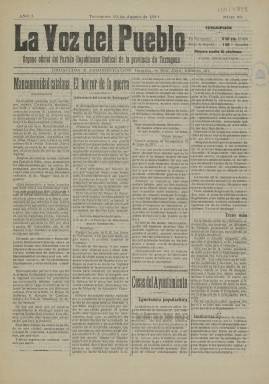 Un acontecimiento de este tipo es el que recoge en la portada de su número de 21 de enero de 1912, con los titulares: ‘Final del proceso de Cullera ¡¡Hemos triunfado!!’. Hace referencia al proceso por los violentos sucesos ocurrido en esa localidad valenciana durante la huelga general de septiembre del año anterior. Hubo condenas a muerte, pero fueron revocadas salvo una, la de Juan Jover, el Chato de Cuqueta, líder de la revuelta.