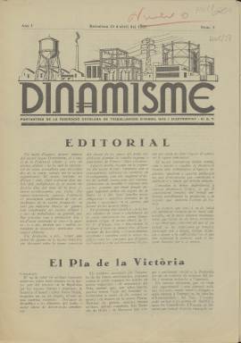 En su primer número la publicación incluye un editorial en el que hace ver la importancia del sector del agua, gas y electricidad como industria básica de guerra y pide a todos los trabajadores y sindicatos unión y sacrificio en un esfuerzo común dirigido a ganar la guerra. Menciona concretamente como sacrificios a llevar a cabo el aumento de las horas de trabajo, restricciones de consumo y aportaciones en dinero y en especie a ‘nuestros hermanos del frente para que puedan soportar mejor los rigores de la lucha’ (redactado en catalán, como todo el texto).