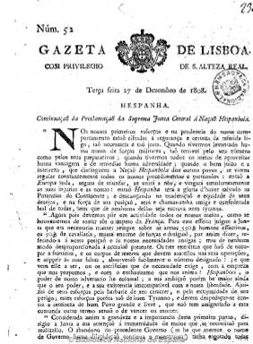 Tiene su más antiguo antecedente en el primer periódico portugués: Gazeta de Restauraçao, de 1640, que en 1715 adopta por vez primera el título de Gazeta de Lisboa, al mismo tiempo que se le otorga su carácter oficial, considerándosele continuación de Gazeta de Lisboa occidental, otro de los títulos que adoptó en el siglo XVIII. Tras la invasión napoleónica en 1807 estará dirigido por el intendente general de Policía, Pierre Lagarde, que había sustituido en su cabecera el escudo de armas reales portuguesas por el águila imperial francesa. La Biblioteca Nacional de España dispone del número 52, de cuatro páginas, y un suplemento extraordinario al mismo, de otras cuatro páginas, de fecha 27 de diciembre de 1808; y el número 303, también de cuatro páginas y de 26 de diciembre de 1812. Ambos estampados en la lisboeta Officina de Antonio Rodrigues Galhardo, con el escudo portugués en su cabecera y “com privilegio de S. Alteza Real”. En el primero incluye la continuación de la proclama de la Junta Suprema Central de la Nación Española, además de otras noticias locales, como la referente a las fiestas con motivo de la restauración del príncipe regente portugués, y otras europeas, también sobre las guerras napoleónicas, así como listados de donativos para hacer frente a los ejércitos franceses. Este título continuó publicándose hasta el 30 de diciembre e 1820, refundiéndose el uno de enero de 1821 con Diario do governo y adoptando este título.