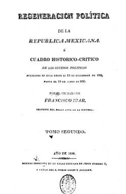 Título de la portada de tomo: Regeneración política de la República Mexicana o Cuadro histórico-crítico de los sucesos políticos, acaecidos en ella desde el 23 de diciembre de [1]829 hasta el 19 de junio de [1]830