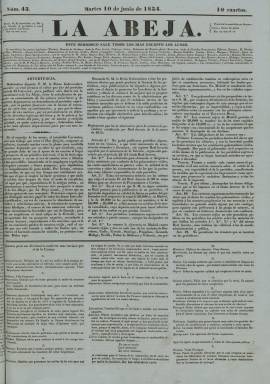En su primer número, La Abeja publicó el Reglamento que desarrollaba el Decreto sobre la censura, que restringía considerablemente la libertad de prensa, lo que da idea de su posición cercana al poder, aunque también hace alarde de su independencia de criterio: "Ni se crea que todo han de ser flores en nuestro periódico porque nos ha dado la humorada de llamarlo Abeja, que espinas habrá también y aguijonazos para malsines y egoístas. Somos tolerantes y pacíficos por índole y por principios, pero no nos haremos tan de miel que se nos coman las moscas."