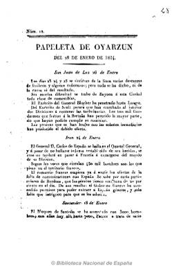 Es continuación de Pliego anual de Oyarzun, que había empezado a publicarse a finales de 1813. De periodicidad semanal, sale ya con el pie de imprenta de Ignacio Ramón de Baroxa, con dos o cuatro páginas. Incluye “noticias extranjeras” sobre los sucesos de la guerra napoleónica, especialmente relativos al sur de Francia, y noticias del valle de Oryarzun y Cantabria.