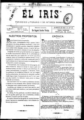 Casi con toda probabilidad, El iris (un título que ya se había publicado anteriormente en la misma localidad entre 1862 y 1864) es producto de las disensiones producidas en el seno del también periódico literario pacense El fomento, que había dirigido ese mismo año Carlos Servert Fortuny, y en el que habían participado tanto Augusto Sánchez como Felipe Cabañas Ventura, quien por su parte sacará La idea (1889-1890), y de cuya polémica aparecen retazos en El iris. Véase en este sentido el trabajo de Carmelo Real Apolo como el de Román Gómez Villafranca. Durante septiembre de 1890 no se publicará y el último número de la colección corresponde al 31 de octubre de este año.