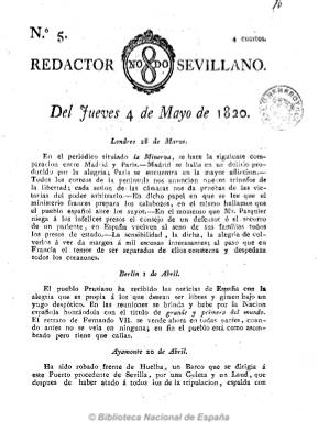 Periódico curioso por cuanto no fue conocido en la historia del periodismo hispalense hasta que Francisco Aguilar Piñal dio cuenta de la existencia de seis números del mismo. En su cabecera se estampa el escudo de la ciudad (NO&DO) y tiene una estructura noticiosa, y además de insertar noticias de España, del extranjero y locales sobre los acontecimientos políticos del trienio liberal, incluye otros artículos comunicados y remitidos, algunos escritos con cierto sarcasmo. Su tendencia fue constitucionalista y liberal y fue crítico con las instituciones religiosas. Salió en números de cuatro páginas de la imprenta de Lopez, a partir del 20 de abril de 1820, y no debió tener larga vida.