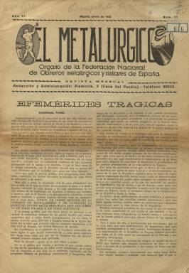 Esta revista mensual comienza a publicarse en enero de 1927, como órgano de la Federación Nacional de Obreros Metalúrgicos y Similares de España, adscrita a la Unión General de Trabajadores (UGT), y es fruto del acuerdo establecido en el XI Congreso de dicha federación sindical celebrada en Bilbao, en 1925. Antecedentes a esta cabecera fue el también mensual El Metalúrgico español (1903-1904), boletín que fue de la Federación Metalúrgica Española, de tendencia ácrata y dirigido por Salvador Torres, y el Boletín Oficial de la Federación de Obreros Metalúrgicos y Similares de España (1908-1909).