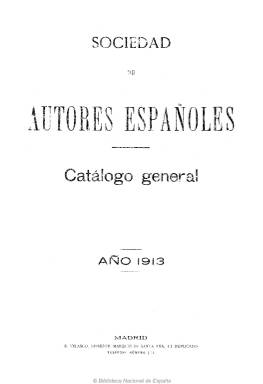 La Sociedad de Autores Españoles fue fundada en 1899, por iniciativa de un grupo de escritores y compositores, para la protección de sus derechos frente a los editores. En este catálogo incluye más de tres mil producciones teatrales de todas clases (clasificadas en comedias, dramas, juguetes, sainetes, zarzuelas, óperas y monólogos), que supone un índice de la historia de la escena española de la época. Es un volumen, de 397 páginas foliadas, donde se presentan las obras ordenadas alfabéticamente por el título, con indicación del género o la clase antes expresada, nombre del autor, número de personajes masculinos y femeninos que aparecen en cada obra y el número de actos en que se divide, con expresión del precio de las mismas, según el número de estos. Se expresa también si están o no impresas. Se conoce otro Catálogo general de esta Sociedad de Autores Españoles correspondiente a 1902 y como volumen 1. Se desconoce si publicó alguno más. La entidad estuvo editando también un boletín, desde 1903 a 1930, y a partir de 1914 empezó a editar la revista titulada La propiedad intelectual.