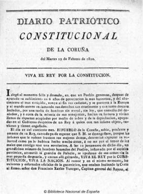 Fundado por la Junta Suprema del Gobierno de Galicia, comenzó a publicarse ocho días después de que La Coruña secundara el pronunciamiento de Riego, el 29 de febrero de 1820, y debió seguir publicándose hasta 1823. De carácter constitucionalista y liberal, bajo su cabecera estampa el lema “Viva el Rey por la Constitución”, y su redactor e impresor es Sebastián Iguereta. Publica noticias sobre los acontecimientos militares y políticos del periodo y de carácter particular, así como artículos de oficio, partes oficiales y bandos de la junta suprema gallega.