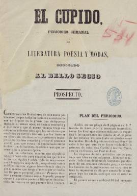 Con el subtítulo periódico semanal de literatura, poesía y modas dedicado al bello secso, esta publicación de vida efímera iba dirigida a la mujeres a fin de recrearlas e ilustrarlas, como decía con tono paternal en su prospecto. Curioso es el empleo de la grafía secso en lugar de sexo, lo que era norma ortográfica corriente en la época. El periódico, de ocho páginas, animaba a colaborar. A los hombres se les informaba de que se les recompensaba si era elegida su composición poética con la publicación de la misma, pero sin retribución. Las colaboraciones de las “señoritas” tenían como recompensa la suscripción por un mes. En esos años ya era conocida la poesía de escritoras como Carolina Coronado y Gertrudis Gómez de Avellaneda. En su primer número de 30 de mayo de 1848, el semanario incluía un artículo sobre el amor que refleja bien el espíritu romántico en el que vivía inmersa la sociedad española : “Qué es el amor? una dulce pasión que arrebata en loco frenesí, que ciega el entendimiento, que priva de su facultad a los sentidos, que conmueve al más duro corazón, que roba la paz al alma, que ennoblece al criminal, justifica al delincuente y una pasión que en fin no es pasión, sino locura, sueño, ilusión…”. Solo unos años antes Zorrilla había estrenado su Don Juan Tenorio y aunque el Romanticismo en Europa empezaba a declinar, en España se mantenía vigoroso y aún no habían aparecido las grandes obras de Bécquer y Rosalía de Castro. En números posteriores, aparecieron artículos analizando el coquetismo (la mujer coqueta) y los celos, aunque la mayor parte de la publicación estaba dedicada a la poesía y a pequeñas narraciones cuyo argumento giraba en torno a las relaciones sentimentales. El periódico desapareció con el número del 18 de junio de 1848, por lo que exceptuando el prospecto solo salieron cuatro números, aunque tuvo una nueva y aún más efímera reaparición al mes siguiente con el título de El Cupido y La Luna. [Descripción publicada el 15/03/2019]