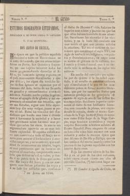 En ese número se puede leer, en una sección de estudios biográficos literarios, un artículo dedicado a Alonso de Ercilla, el poeta y soldado de siglo XVI autor de ‘La Araucana’ sobre la conquista de Chile. Una composición poética y una reseña sobre la ópera ‘Inés de Castro’ representada en el Teatro Principal completan el contenido.