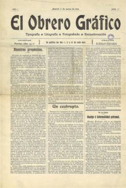 Publicación de los trabajadores de las artes gráficas nacida para defender sus intereses, en su primer número de 1 de marzo de 1908 explicaba sus propósitos con estas palabras: “La explotación codiciosa de las industrias del libro en España –incluyendo en primer lugar a Madrid- ha empeorado talmente las condiciones de vida de cuantos a ellas se dedican que ya se recuerdan como si fuesen tiempos de leyendas aquellos en que nuestros predecesores percibían buenos jornales y vestían como las personas decentes”. El periódico, que no pertenecía a ningún sindicato sino que era costeado por tipógrafos asociados para luchar por sus intereses, informaba en este primer número de la atomización de la industria, que había “caído en manos de advenedizos”. Denunciaba que las empresas competían a base de “salarios de hambre” y daba cuenta de la situación: sólo en Madrid había cerca de 200 establecimientos tipográficos para un número de operarios de todas las ramas que no llegan a 3.000. “Esta superabundancia de mezquinos talleres, conocidos algunos con el típico nombre de bodegones, es una de las causas primordiales de nuestro malestar porque casi todos ellos viven haciéndose una indigna competencia”, señala. Los jornales de los trabajadores en Madrid rondaban los diez reales pero fuera de la ciudad podían bajar a siete u ocho reales. El PSOE, que había nacido en el seno de los tipógrafos madrileños dirigidos por su líder Pablo Iglesias, vio con buenos ojos la aparición de El Obrero Gráfico, que en 1917 conoció una segunda etapa ligado ya a la Federación Gráfica Española, dentro del sindicato UGT. En esta segunda etapa la publicación aumentó su número de páginas aunque la periodicidad se hizo también mayor y de salir dos veces al mes acabó saliendo cada dos meses o cada tres. En esta nueva etapa incorporó la fotografía a su no muy atractiva presentación y entre la información de orden interno aparecía algún reportaje gráfico como el dedicado a la Escuela de Aprendices Tipógrafos. La portada del último número de la publicación que posee la BNE, de abril de 1936, la ocupa una fotografía de Pablo Iglesias con el anuncio del congreso extraordinario de la Federación Gráfica previsto para el mes de junio siguiente. En páginas interiores y junto a una fotografía a toda página de una miembro de la Federación, Luis de Sirval, “vilmente muerto en los calabozos de una comisaría de Oviedo” durante la llamada Revolución de Octubre de Asturias, la publicación hace un encendido elogio de ésta en unos términos que preludian el enfrentamiento ideológico que desembocará en la Guerra Civil unos meses después. [Descripción publicada el 15/03/2019]