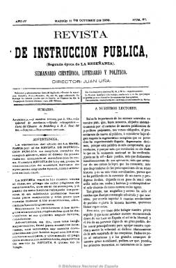 A los pocos días de triunfar la Gloriosa y coincidiendo con el inicio del nuevo curso académico, el extremeño Juan Uña Gómez (1838-1909) continúa su labor de reformismo pedagógico a través de esta revista, que sólo implica un cambio en la cabecera de la que había publicado anteriormente con el título La enseñanza (1865-1868), y siguiendo la seriación de esta. Así, el 10 de octubre publica el número 67, de ocho páginas, y el 25 de octubre, otra entrega, en este caso con doble paginación, que secuencia como números 68-69.