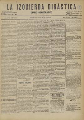 Periódico dirigido por el abogado y diputado liberal por Cáceres Joaquín González Fiori, era el órgano del partido del mismo nombre, fundado en 1881 por liberales como Segismundo Moret y López Domínguez decepcionados con la política de Sagasta en el Gobierno. Tres años después, no obstante, el partido volvió a fusionarse con el Partido Liberal liderado por Sagasta. Subtitulado Diario democrático, con cuatro páginas, la última de ellas dedicada a anuncios y a informar de la cartelera teatral, la publicación tenía un marcado carácter político y predominaba en su primera página el artículo de fondo con la posición del periódico sobre la actualidad nacional, aunque no faltaba tampoco el folletín. En páginas interiores podían leerse noticias de provincias, de política internacional, de mercados y de sucesos, entre otras. En marzo de 1884, apareció en sus páginas un escrito de protesta contra el Gobierno conservador de Cánovas del Castillo y sus medidas contra la prensa. Este escrito fue publicado por 26 periódicos de Madrid, liberales y republicanos. También atacó en 1895 la política en Cuba del general Martínez Campos al iniciarse la guerra que daría lugar a la independencia de la isla con la ayuda de Estados Unidos. La BNE conserva precisamente de este periódico los años de 1897 a 1899 en que se enmarca el llamado Desastre del 98. Como la mayoría de los diarios de la época, apoyó con entusiasmo desbordado el enfrentamiento con EEUU dando por supuesta la superioridad de la flota española y su victoria. Ejemplo de cómo la agresividad contra Estados Unidos llegó a un grado extremo es lo publicado por La Izquierda Dinástica el 26 de marzo de 1898, poco después de la voladura accidental del acorazado Maine en el puerto de la Habana y cuando la guerra con el gigante norteamericano era inminente. Dada la campaña de la prensa yankee acusando a los españoles del suceso, el periódico publicó en primera página un artículo con el significativo título ¿Cuándo vendrá? en el que otras cosas decía: “Creíase por este viejo mundo que el pueblo fundado por los puritanos era un pueblo de hombres decorosos y resulta un país de mamarrachos. Entiéndase bien, de mamarrachos sin que este calificativo excluya el de rateros”. El director del periódico, González Fiori, fue autor de obras de Derecho y la BNE conserva el discurso que pronunció en Las Cortes el 26 de mayo de 1882 contra el proyecto de ley sobre el establecimiento del juicio oral y público, la ley de enjuiciamiento criminal que ha llegado hasta nuestros días pues no fue reformada hasta 2015. [Descripción publicada el 10/09/2018]