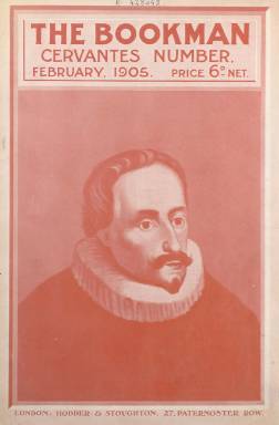 La colección de la Biblioteca Nacional de España dispone de este número “especial” que la revista mensual londinense The Bookman (1891-1934) dedicó a Cervantes para conmemorar el tercer centenario de la primera edición del Quijote. Es el número 161, correspondiente a febrero de 1905, y su cubierta, con tinta roja, la ocupa íntegramente un retrato del escritor español. The Bookman fue una publicación periódica, editada por Hodder & Sthoughton y dedicada a la crítica e historia literaria, que daba cuenta, asimismo, de las novedades bibliográficas, y en la que colaborarán, entre otros, escritores como W.B. Yeats (1865-1939) o Samuel Becket (1906-1989).