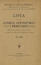 Exemplaire Lista de los autores, compositores y propietarios1910140 pages Ouvrir l'exemplaire Télécharger Voir le titre Ajouter à mon dossier Supprimer de mon dossier