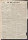 Este periódico llevaba por subtítulo el de Diario Político y de Noticias y realmente más que por su información política se distingue por el espacio dedicado a la comunicación de hechos puntuales o noticias. Seguía en eso el ejemplo de La Correspondencia de España, periódico que intentó alejarse de la información partidista para hacer una prensa más imparcial y empresarial. También al igual que La Correspondencia de España, La Publicidad dedicaba la última de sus cuatro páginas a los anuncios[...]